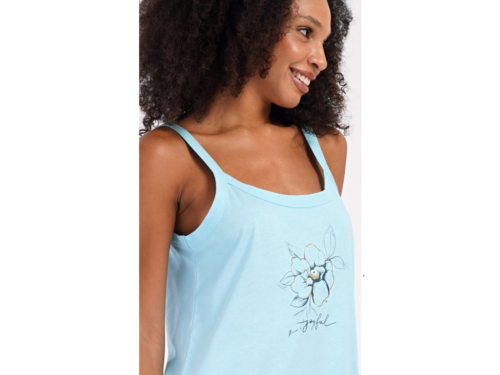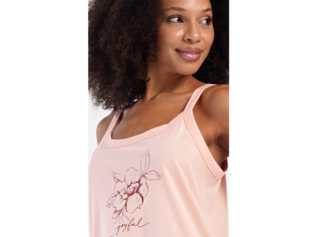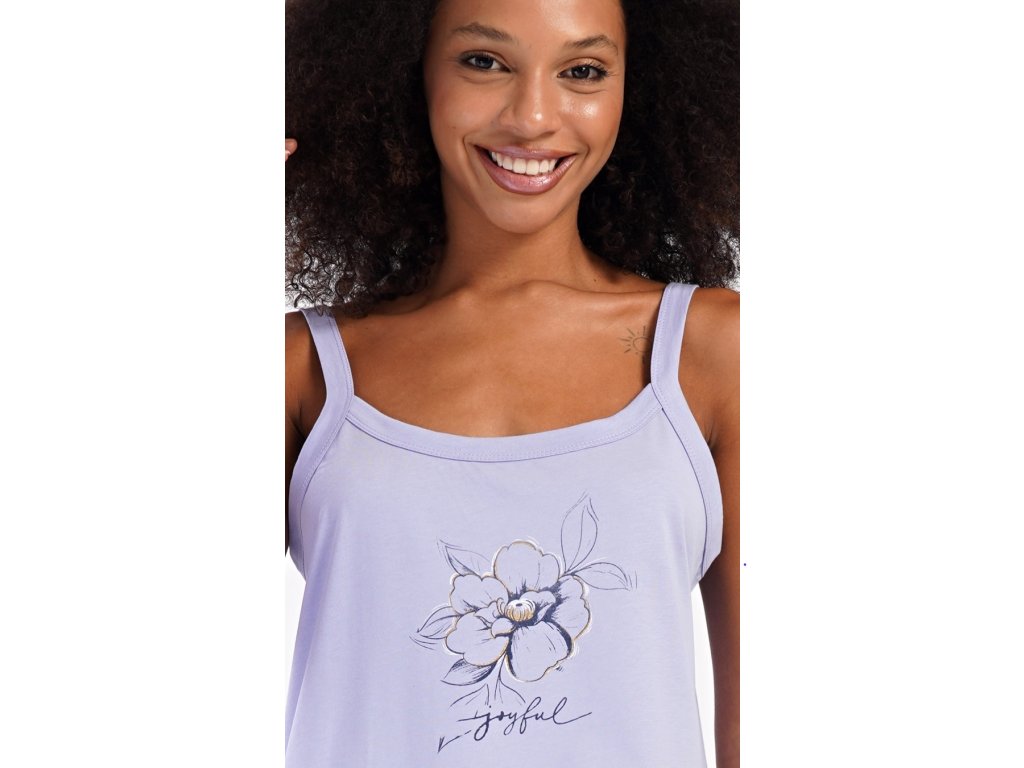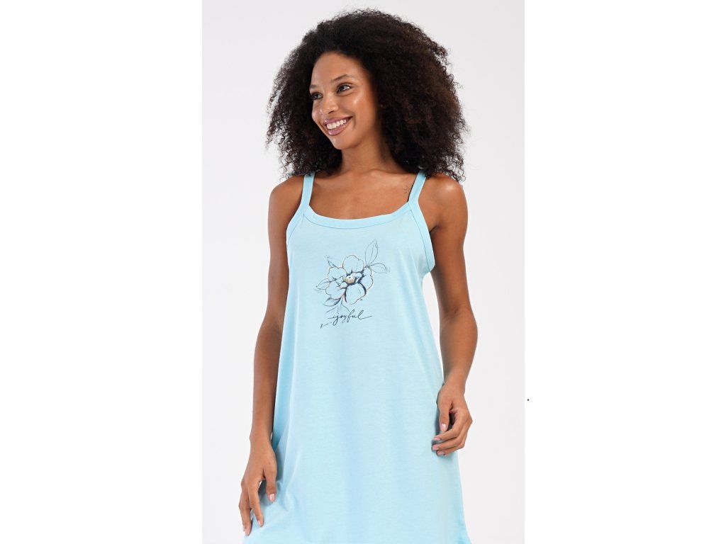 Dámska bavlnená nočná košeľa na ramienka Adriana. Dámsku nočnú košieľku na ramienka zdobí obrázok kvetu a drobný nápis. Použitý materiál s obsahom bavlny 100% je príjemný a poddajný na dotyk.