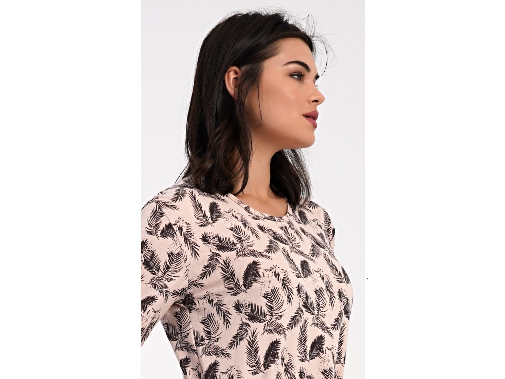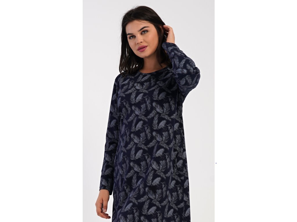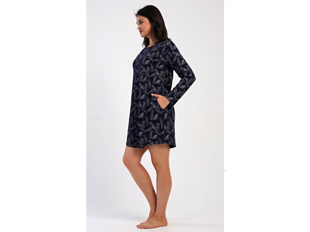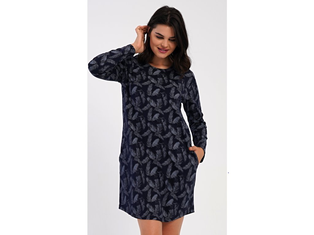 Dámske bavlnené domáce šaty s dlhým rukávom Isabela. Domáce šaty s okrúhlym výstrihom a vreckami zdobia potlač pierok. Použitý bavlnený materiál je príjemný a poddajný na dotyk.