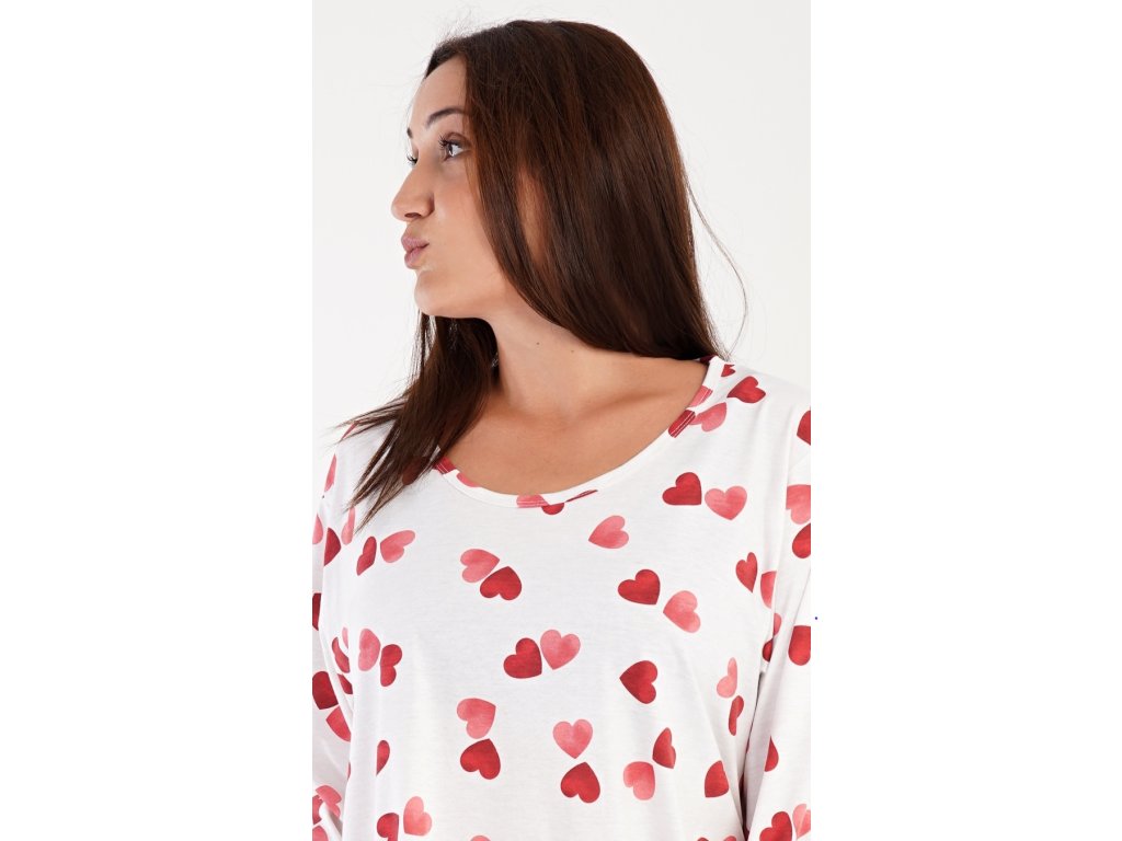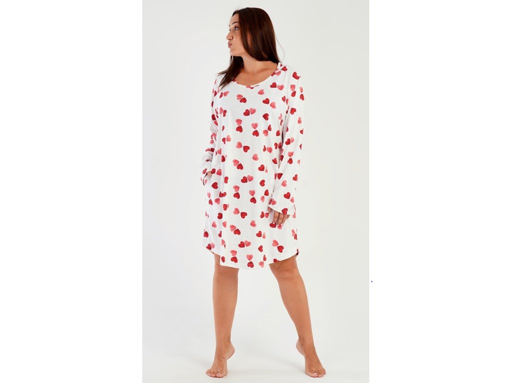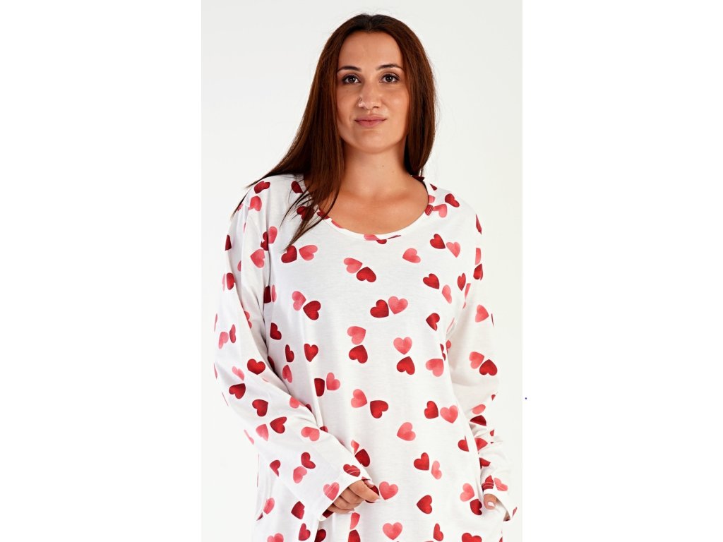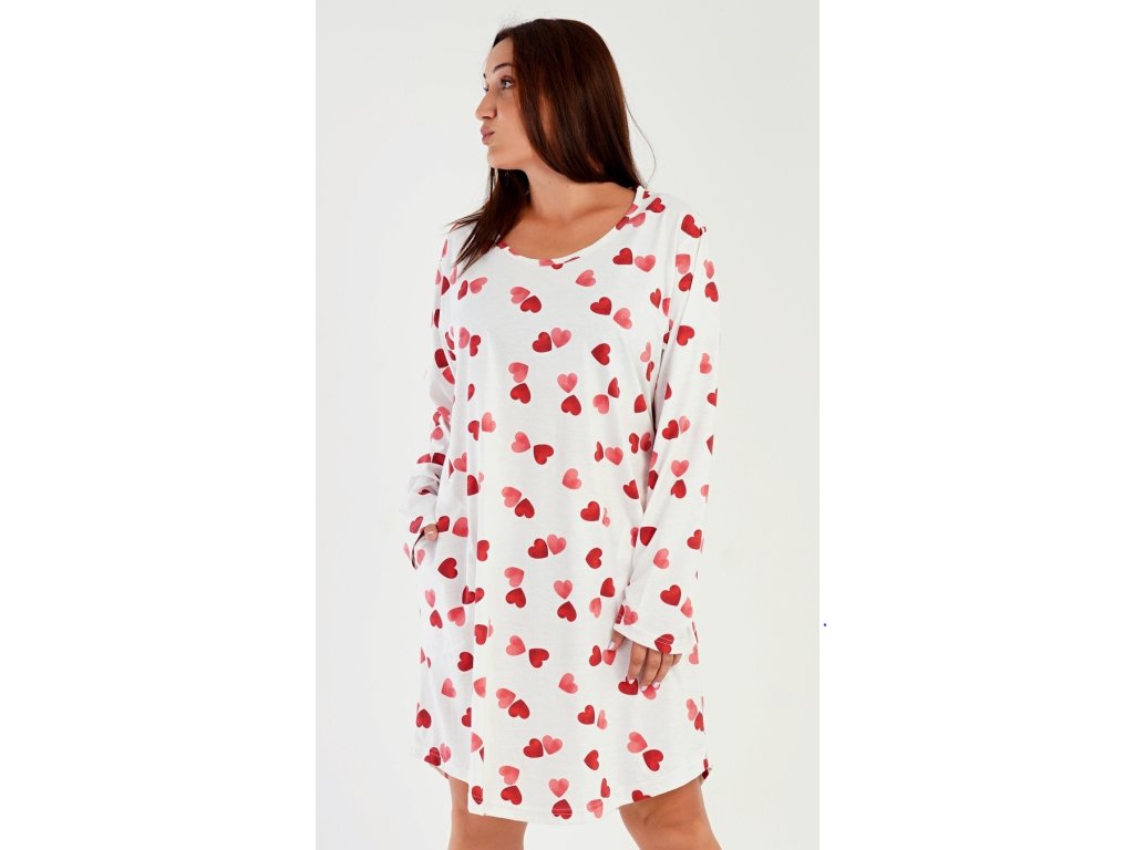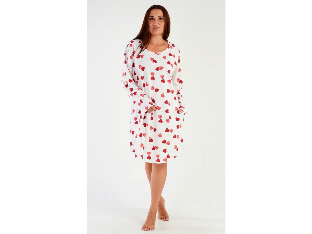 Dámske domáce šaty s dlhým rukávom Srdce. Pohodlné domáce šaty s okrúhlym výstrihom zdobí potlač srdiečok. Majú dlhý rukáv, dĺžku po kolená a praktické vrecká. Použitý materiál s obsahom bavlny 70% je príjemný a poddajný na dotyk.