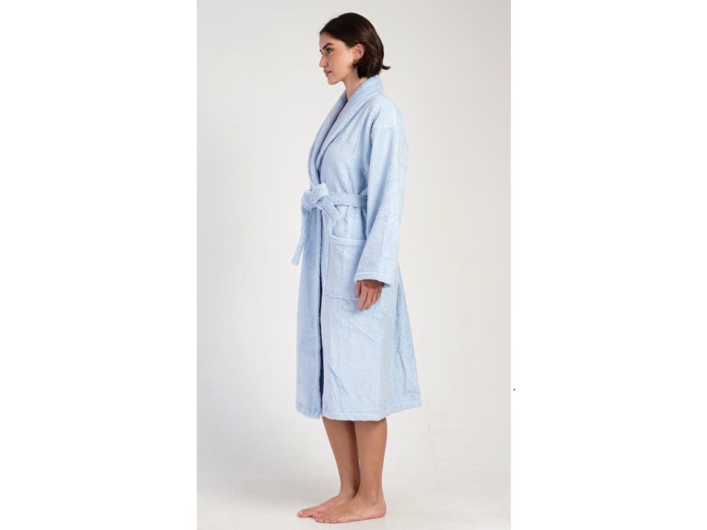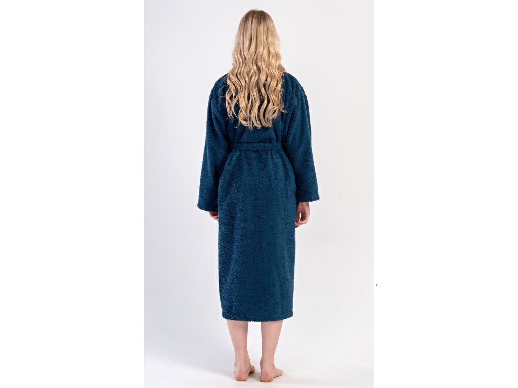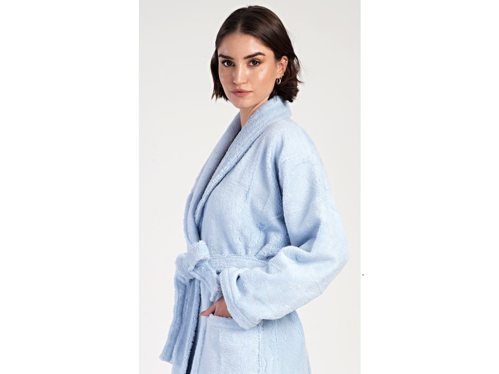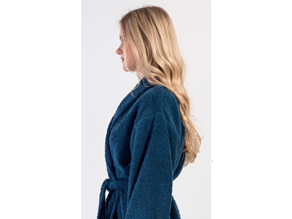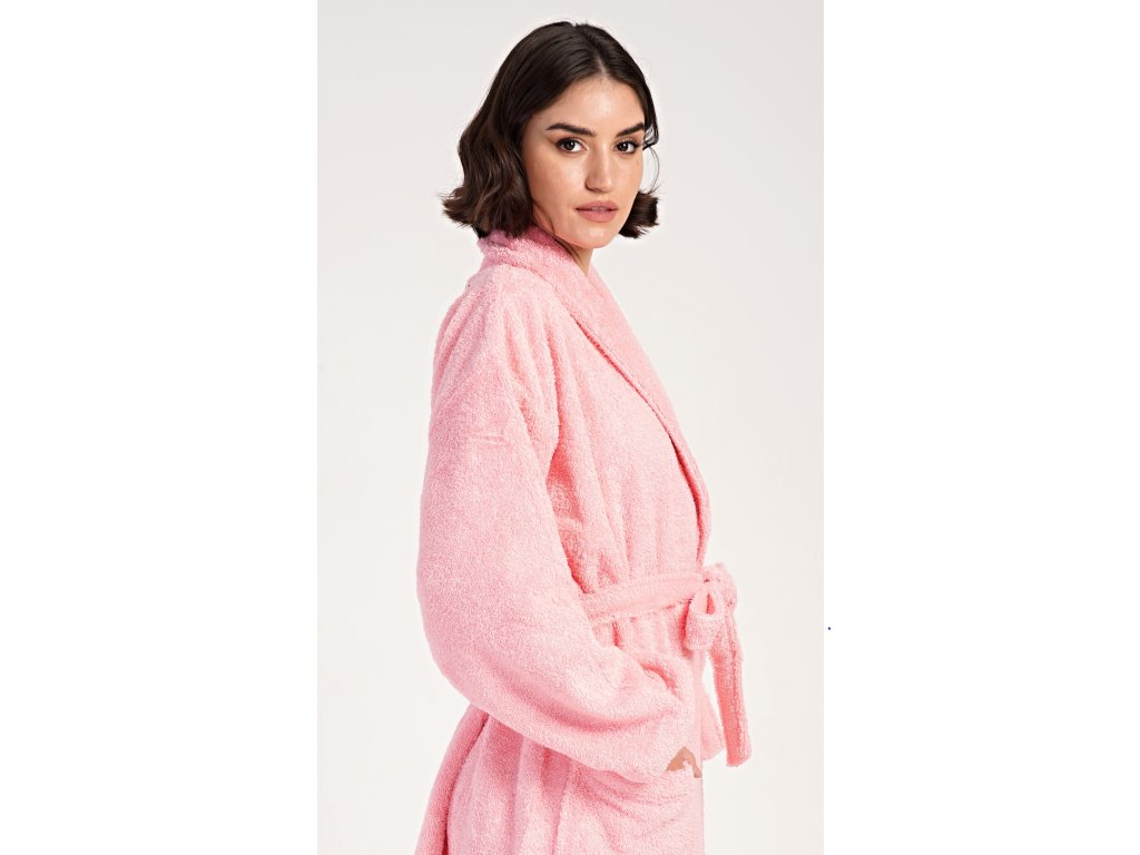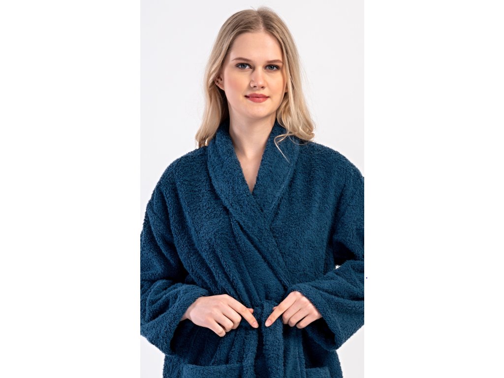 Dámsky dlhý froté župan so šálovým golierom Karolína. Dámsky dlhý župan so šálovým golierom, opaskom na stiahnutie a vreckami je vhodný po kúpeli aj na povaľovanie sa doma na gauči. Použitý bavlnený materiál je príjemný a poddajný na dotyk.