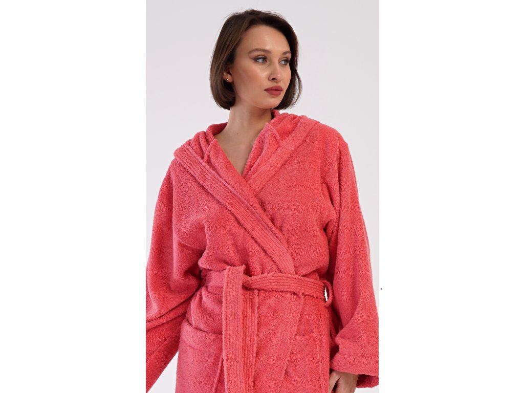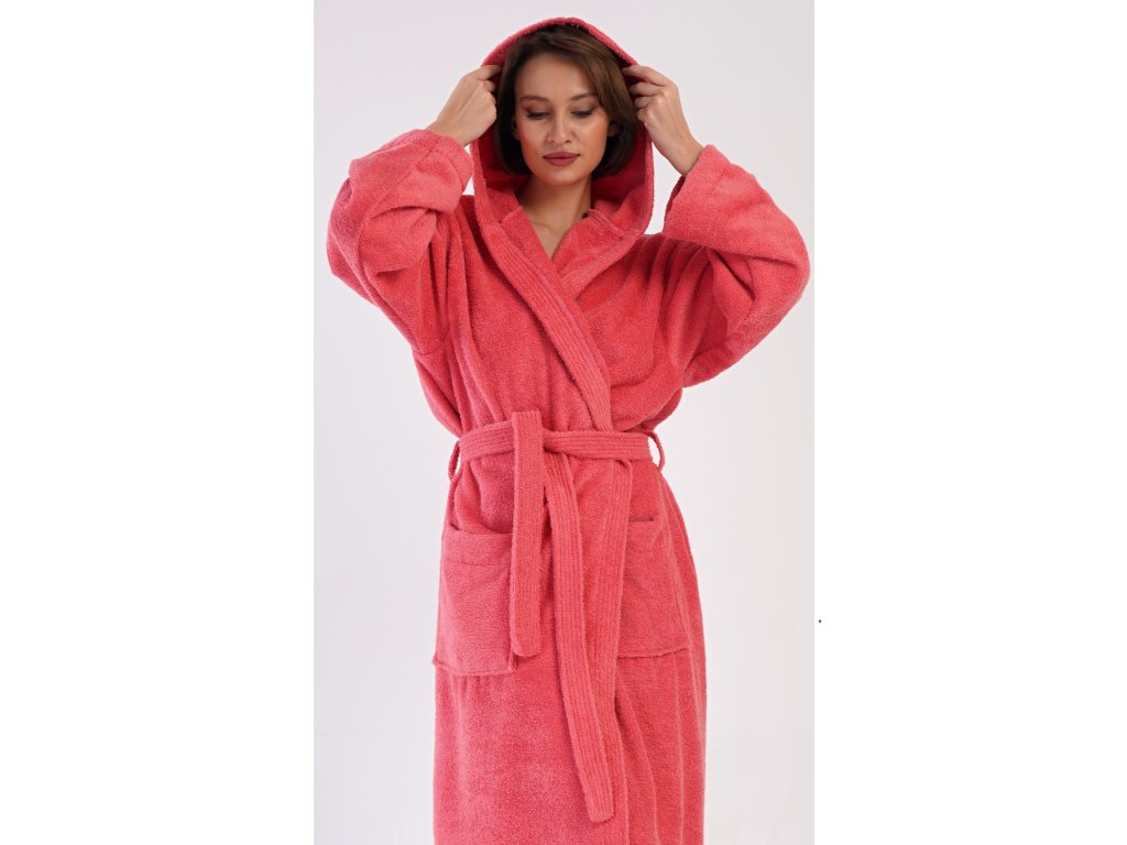 Dámsky bavlnený froté župan s kapucňou Jahoda. Dámsky dlhý župan s kapucňou a opaskom na stiahnutie je vhodný po kúpeli aj na povaľovanie sa doma na gauči. Froté župan má praktické vrecká, ktoré oceníte pri návšteve wellness. Použitý bavlnený materiál je príjemný a poddajný na dotyk.