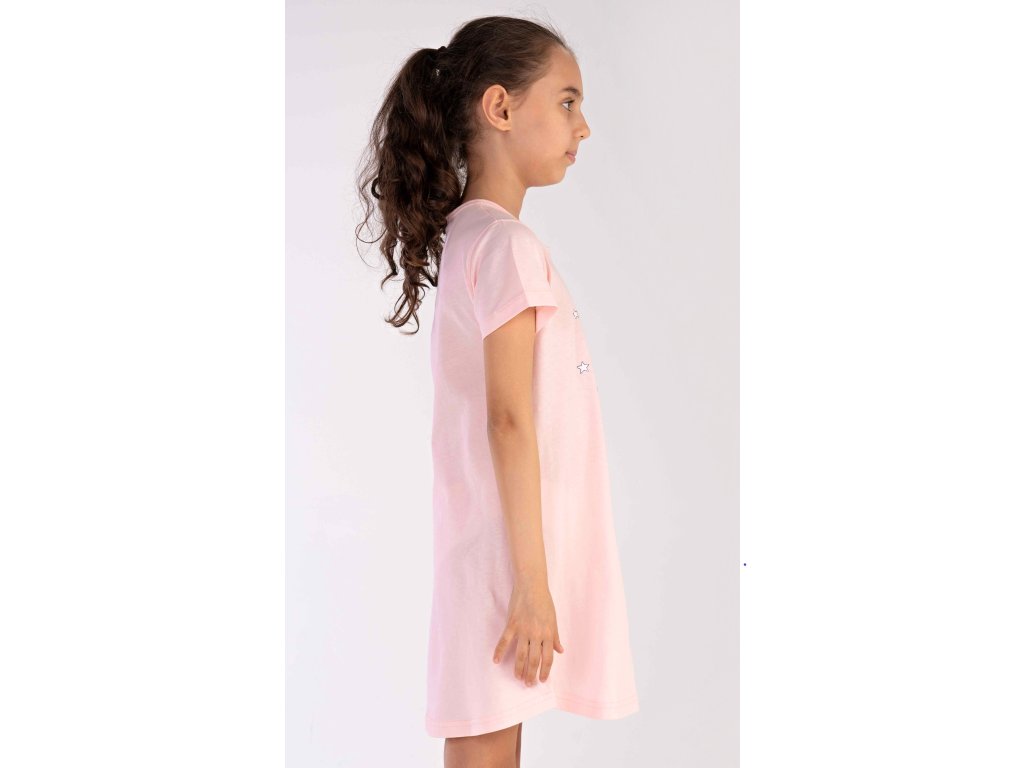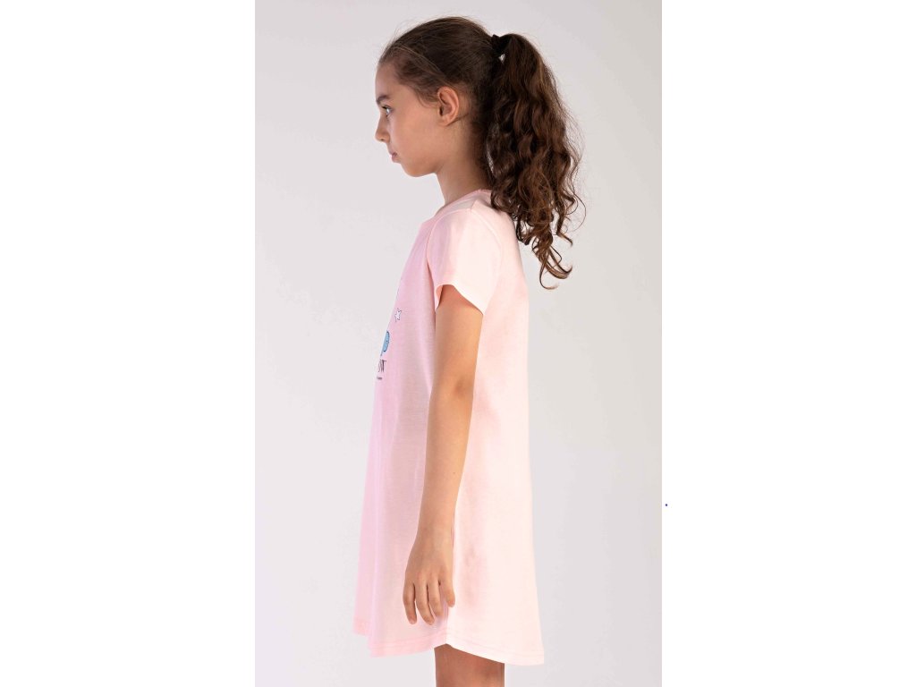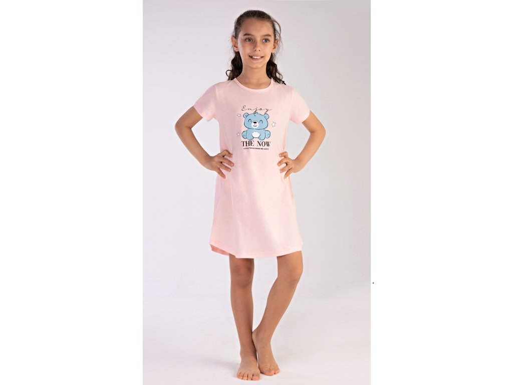 Detská bavlnená nočná košeľa s krátkym rukávom Enjoy. Na jednofarebnej košieľke s krátkym rukávom je obrázok medvedíka a nápis 'Enjoy the now'. Použitý bavlnený materiál je poddajný a príjemný na dotyk.
