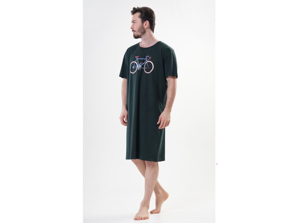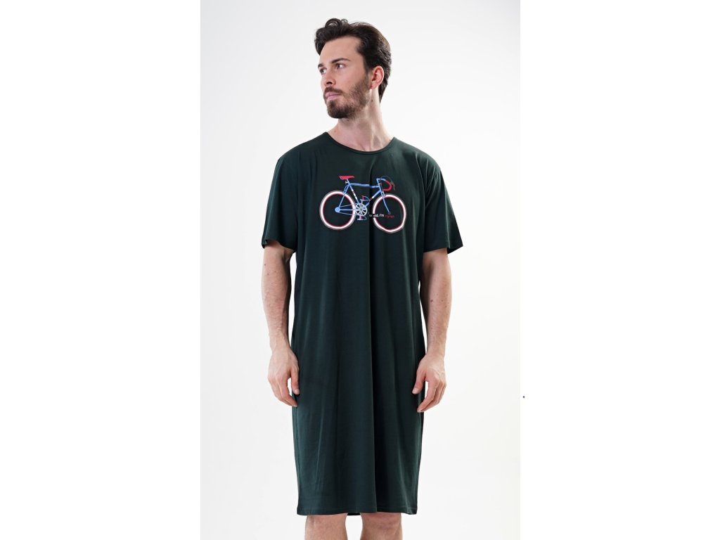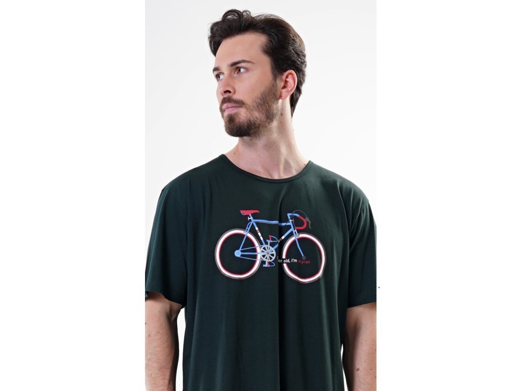 Pánska bavlnená nočná košeľa s krátkym rukávom Bike. Pánska nočná košeľa pre všetkých milovníkov pohodlia je jednofarebná, na hrudi má väčší obrázok retro kolesa a nápis I'm not old, I'm stylish. Použitý materiál s obsahom bavlny 100% je príjemný a poddajný na dotyk.