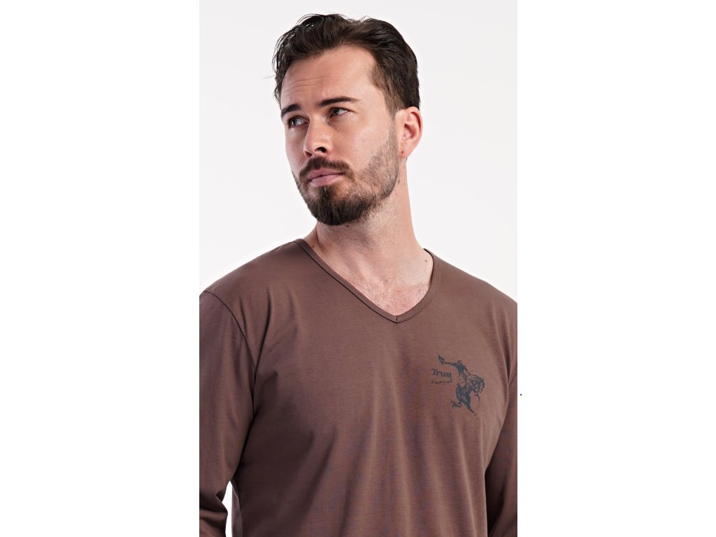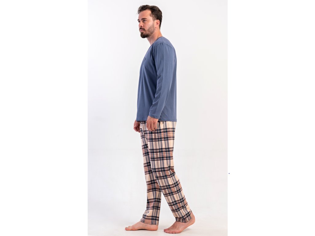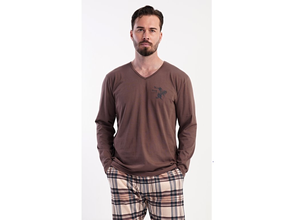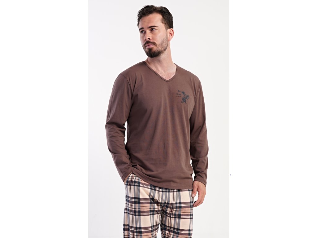 Pánske dlhé bavlnené pyžamo Paul. Pánske pyžamo sa skladá z trička s dlhým rukávom a dlhých nohavíc. Tričko je jednofarebné, zdobené na hrudi drobným obrázkom. Kockované nohavice majú v páse gumu, šnúrku na stiahnutie a praktické vrecká. Použitý materiál s obsahom bavlny 100% je poddajný a príjemný na dotyk.
