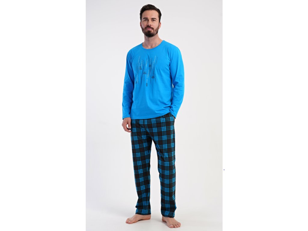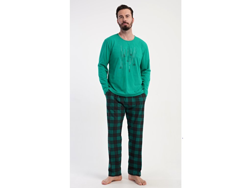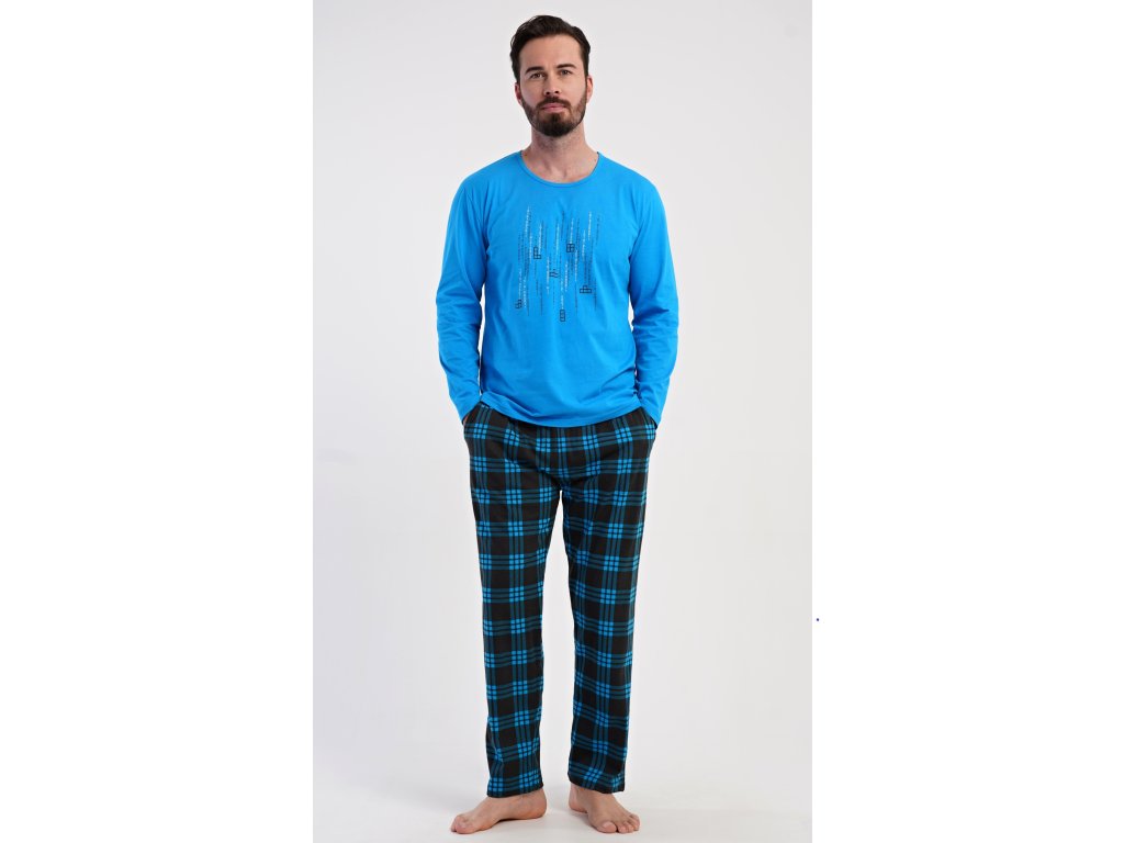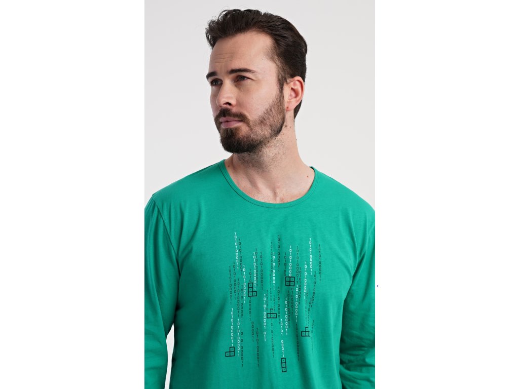 Pánske bavlnené pyžamo s dlhým rukávom Tetris. Pánske pyžamo sa skladá z trička s dlhým rukávom a dlhých nohavíc. Tričko s okrúhlym výstrihom zdobí na hrudi obrázok hry Tetris. Tričko dopĺňajú kárované nohavice, ktoré majú v páse gumu, šnúrku na stiahnutie a praktické vrecká. Použitý materiál s obsahom bavlny 100% je príjemný a poddajný na dotyk.