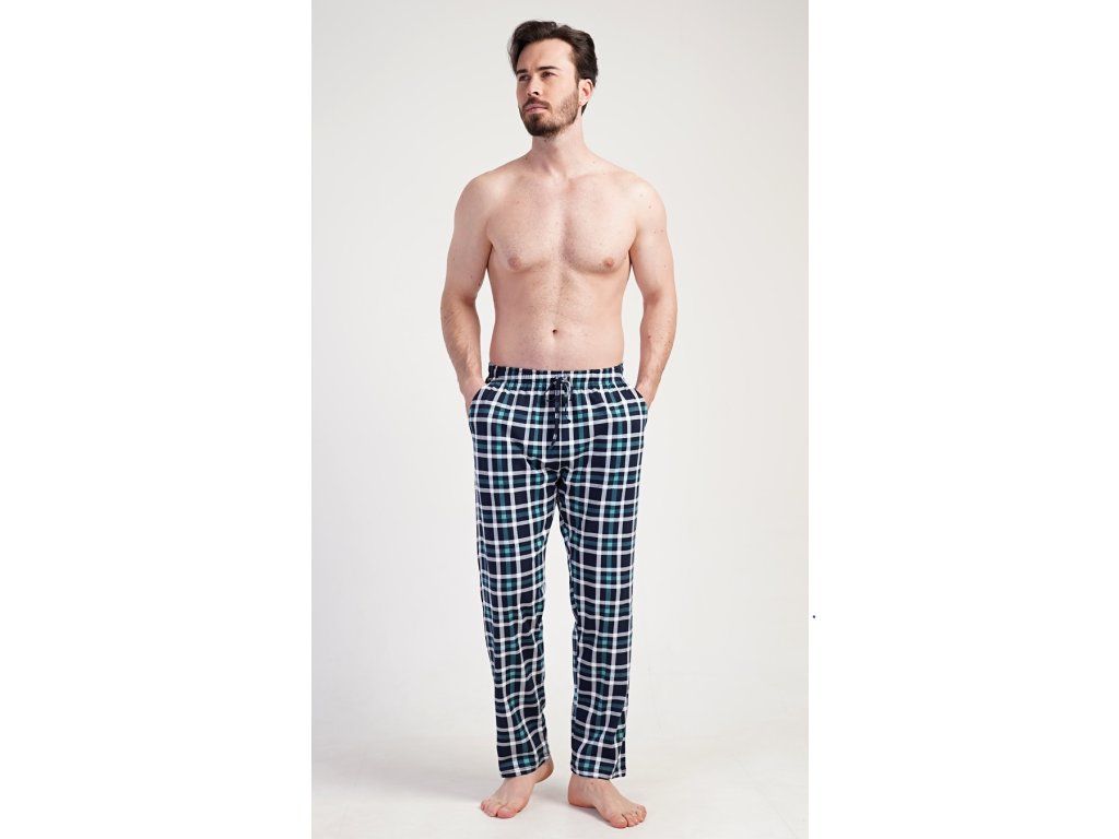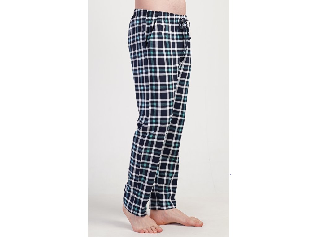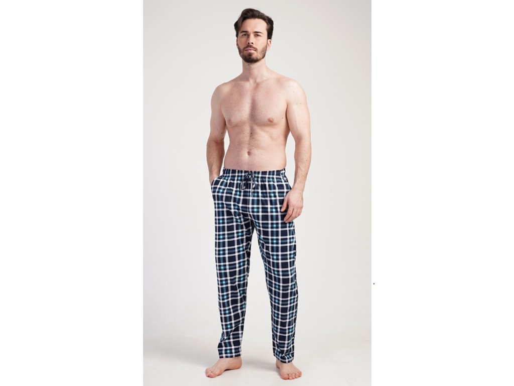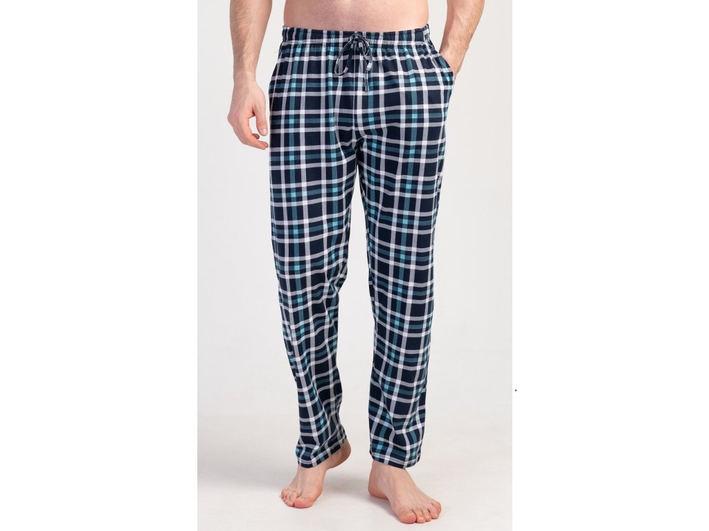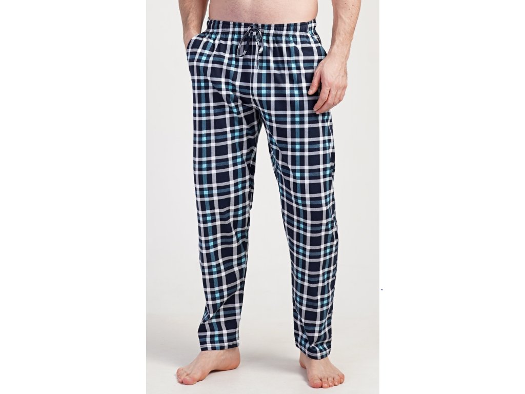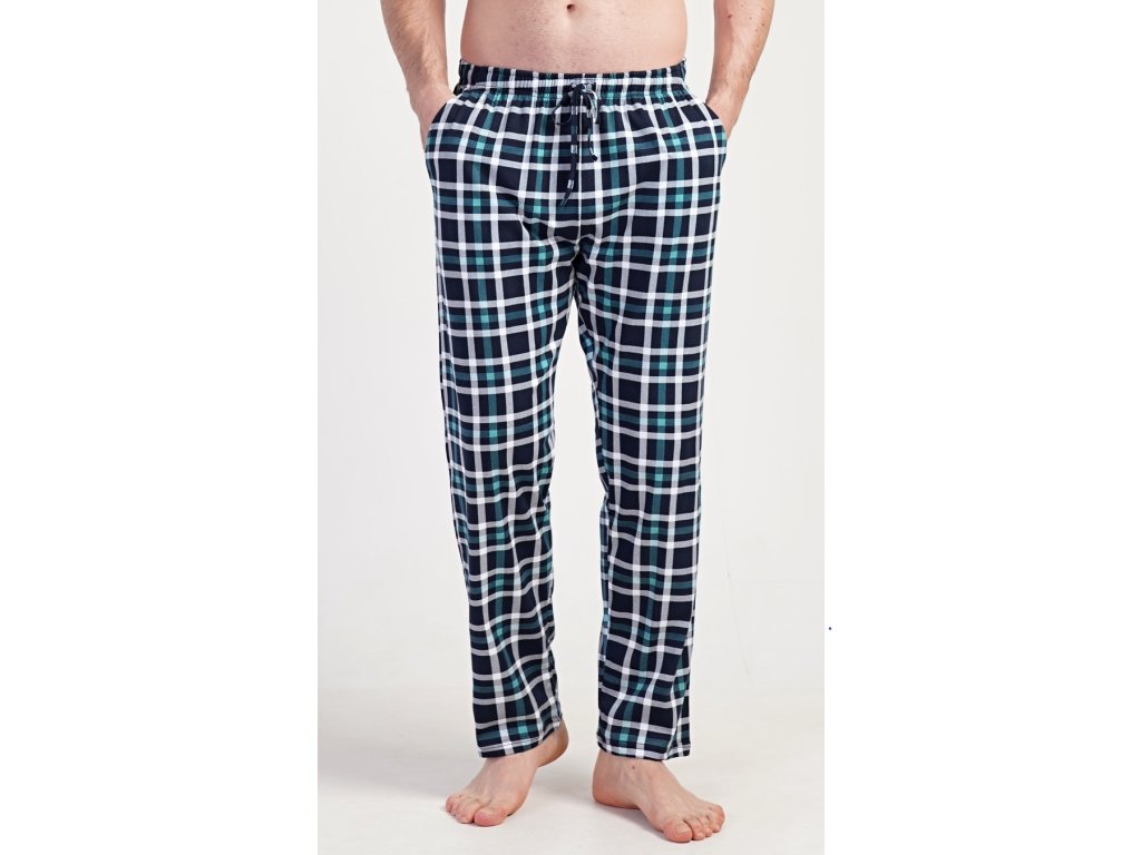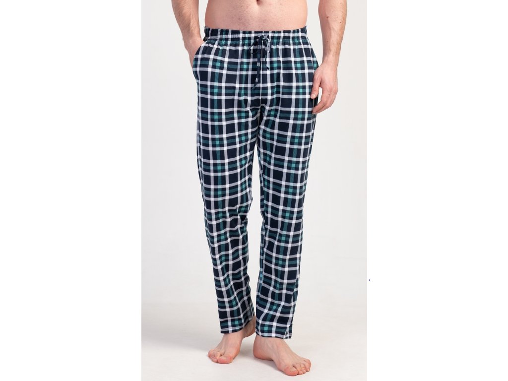 Pánske bavlnené pyžamové nohavice Simon. Kockované nohavice majú v páse gumu, šnúrku na stiahnutie a praktické vrecká. Mateiriál s podielom bavlny 100% je príjemný a poddajný na dotyk.